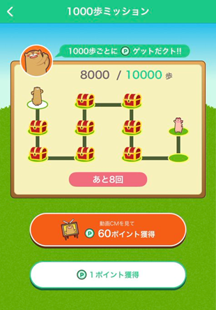 1000歩ごとにポイント獲得